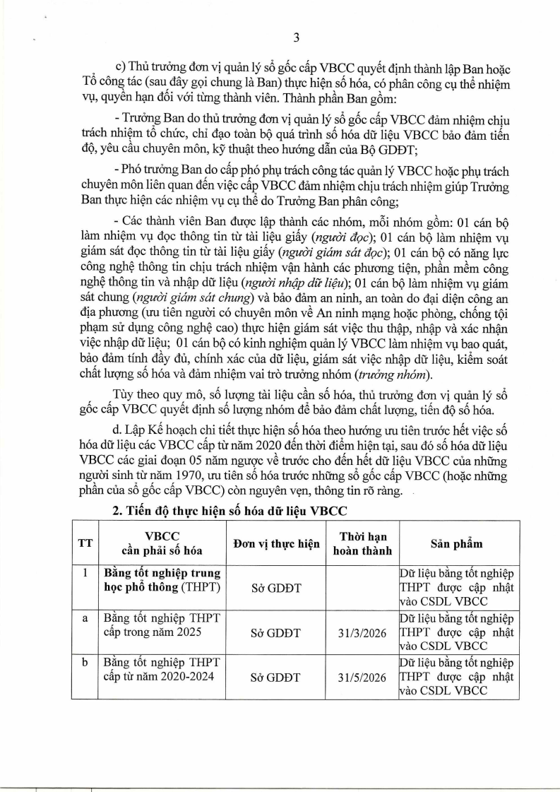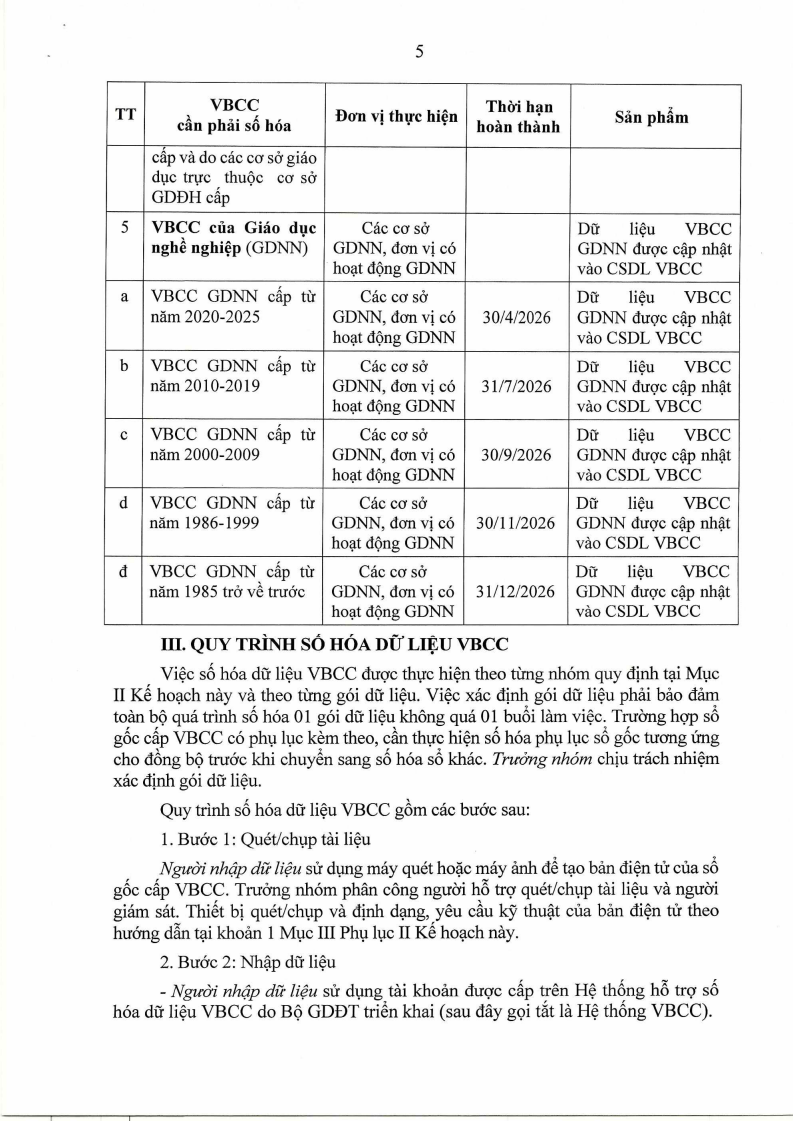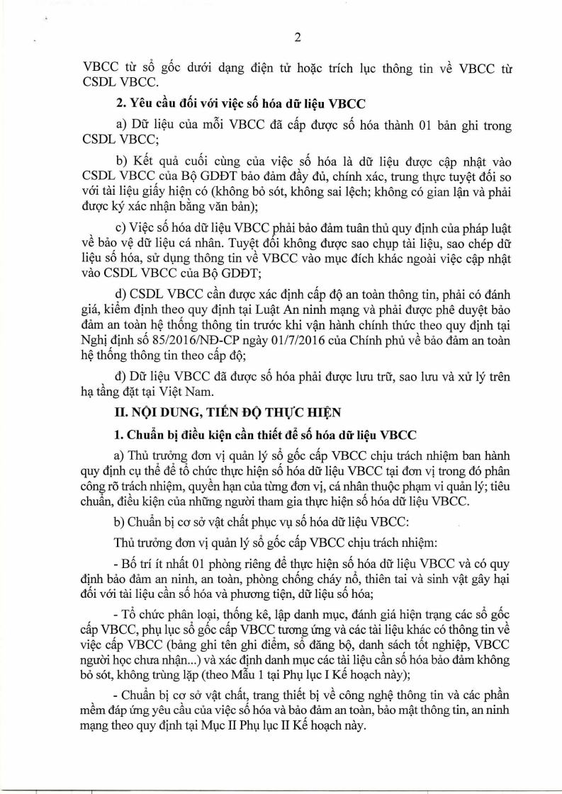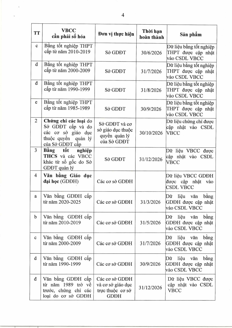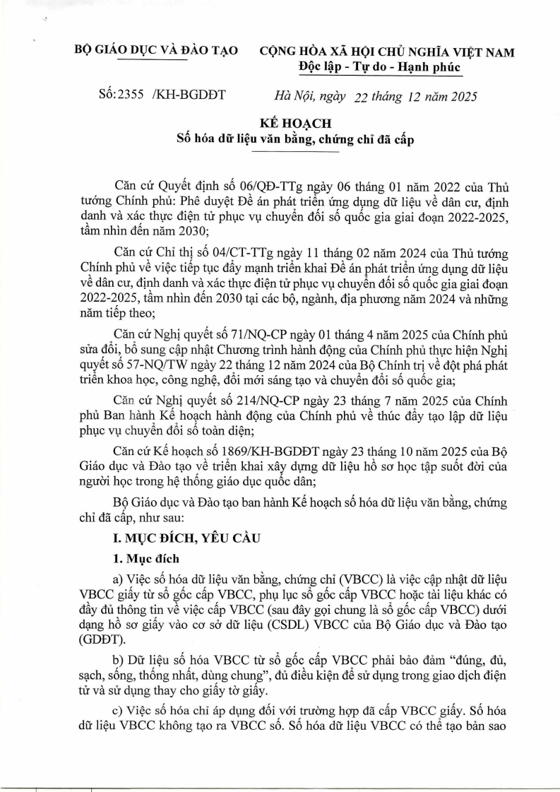 Kế hoạch số hóa dữ liệu văn bằng, chứng chỉ đã cấp