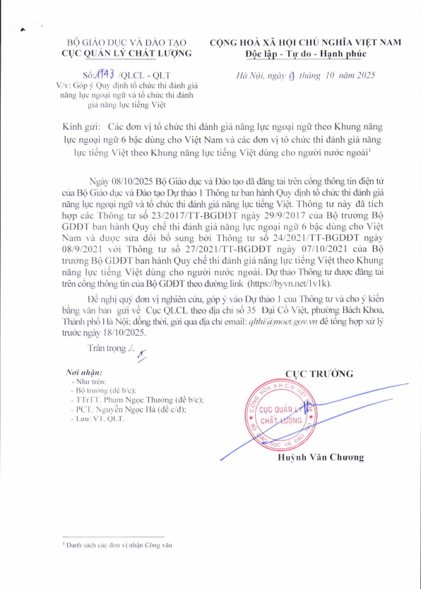 Góp ý Quy định tổ chức thi đánh giá NLNN và tổ chức thi ĐGNL tiếng Việt