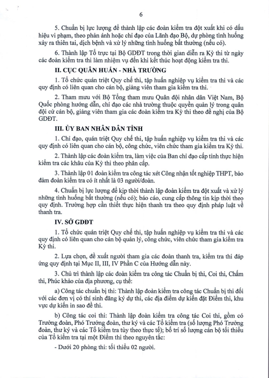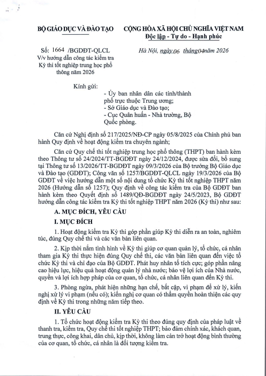 Hướng dẫn công tác kiểm tra Kỳ thi tốt nghiệp trung học phổ thông năm 2026
