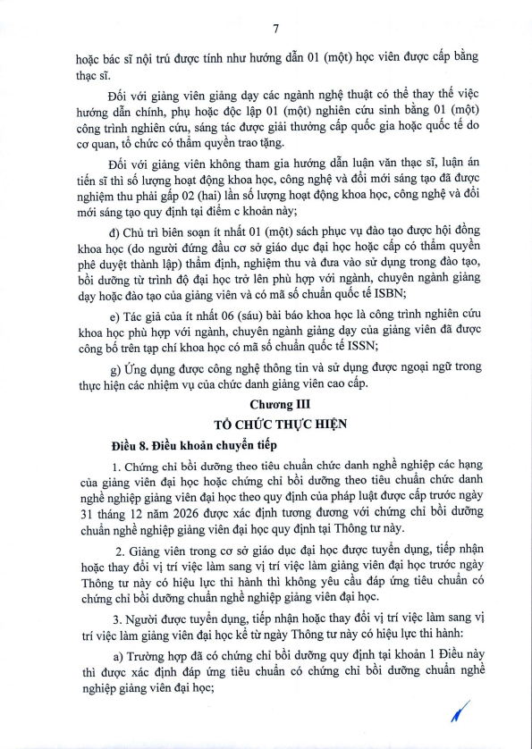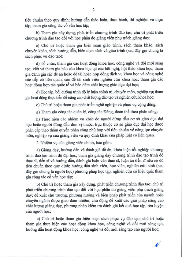 Thông tư quy định chuẩn nghề nghiệp giảng viên đại học