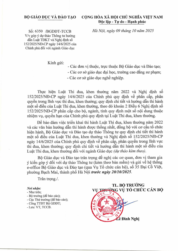Góp ý dự thảo Thông tư hướng dẫn Luật TĐKT và Nghị định số 152/2025/NĐ-CP ngày 14/6/2025 của Chính phủ đối với ngành Giáo dục