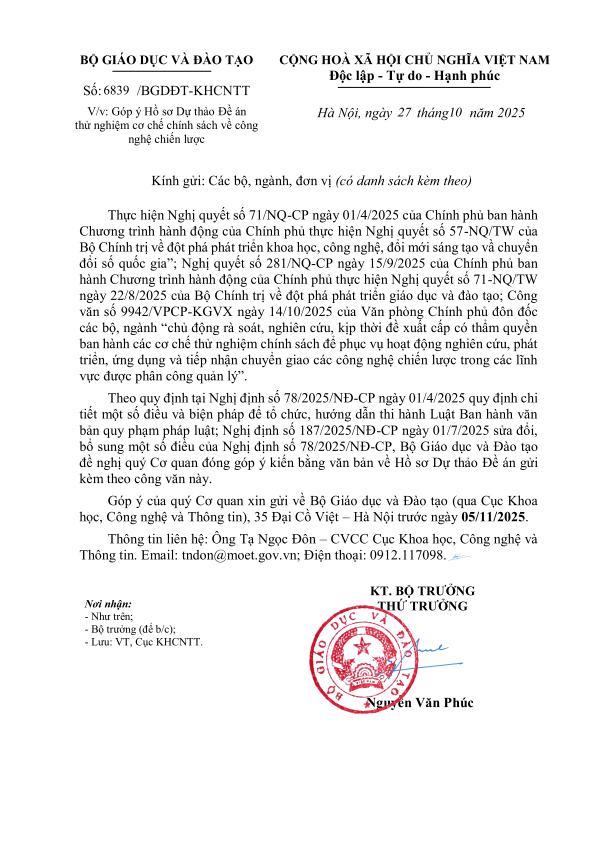 Góp ý Hồ sơ Dự thảo Đề án thử nghiệm cơ chế chính sách về công nghệ chiến lược