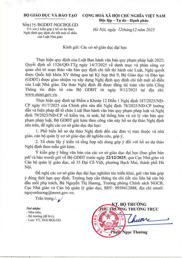 Góp ý hồ sơ dự thảo Nghị định quy định chi tiết thi hành một số điều của Luật Nhà giáo