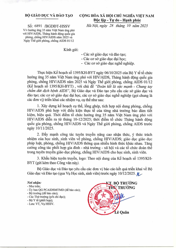 Hưởng ứng 35 năm Việt Nam ứng phó với HIV/AIDS; Tháng hành động quốc gia phòng, chống HIV/AIDS năm 2025 và hưởng ứng Ngày Thế giới phòng, chống AIDS 01/12