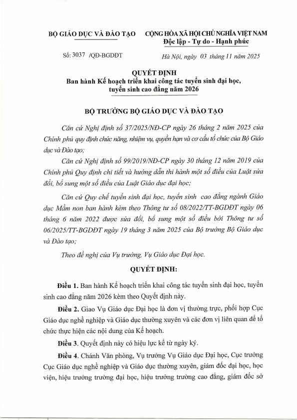 Kế hoạch triển khai công tác tuyển sinh đại học, tuyển sinh cao đẳng năm 2026