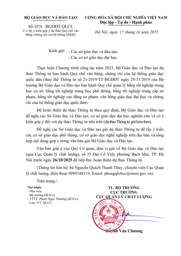 Lấy ý kiến góp ý dự thảo Quy chế văn bằng, chứng chỉ của hệ thống GDQD