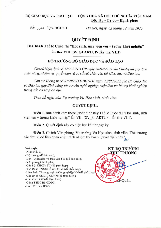 Thể lệ Cuộc thi “Học sinh, sinh viên với ý tưởng khởi nghiệp” lần thứ VIII (SV_STARTUP- lần thứ VIII)